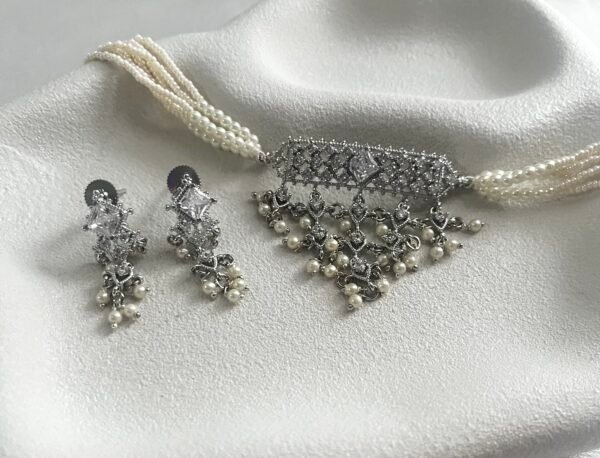 Elevate your look with this statement pearl choker necklace set, available in both gold and silver finishes.