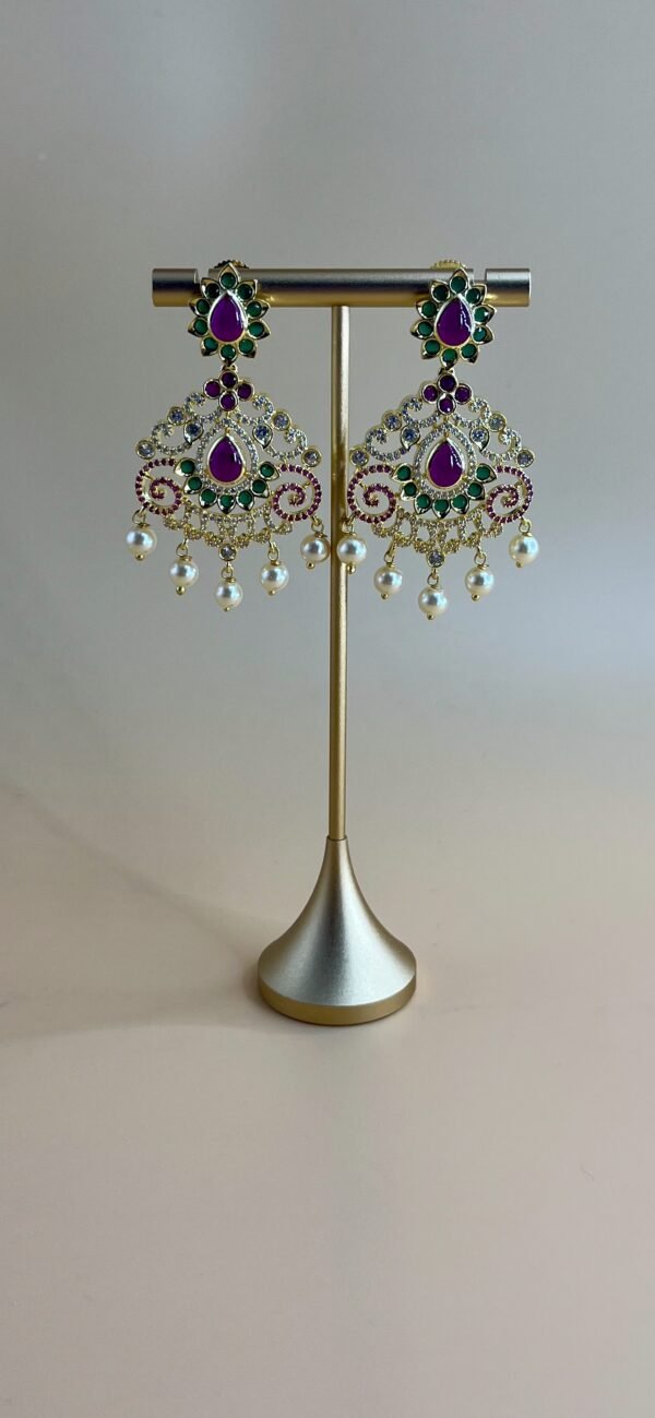 •    Ruby pink and emerald green stone embellishments